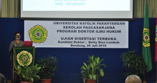Selamat kepada Dr. Betty Lambok beserta keluarga atas gelar S3 yang telah diraihnya, dan selamat pula kepada Universitas Swadaya Gunung Jati (UNSWAGATI) Cirebon. Pada tanggal 26 Juli 2016, Sdri. Betty Lambok telah menyelesaikan pendidikan S3-nya di program studi Doktor Ilmu Hukum, Sekolah Pascasarjana, Universitas Katolik Parahyangan. Semoga dengan pencapaiannya ini …