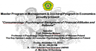 Master Program in Management & Doctoral Program in Economics proudly present: “Consumerology: Psychological Background of Financial Attitudes and Behavior” Speaker: Prof. Dominika Maison Professor in Psychology Department at University of Warsaw-Poland The Key Opinion Leader in Consumer Psychology & Market Research in Poland Friday, November 13, 2015 06.30 – 09.00 …