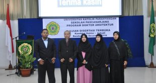 Dengan Judul Disertasi: “PERSISTENSI MAKNA ZONA PUBLIK DAN PRIVAT PADA RUMAH TRADISIONAL MASYARAKAT JAWA DI DESA JAGALAN DAN KELURAHAN PURBAYAN KOTAGEDE YOGYAKARTA” dan promotor: Prof. Antariksa, Ir., M.Eng., Ph.D. dan ko-promotor: Dr. Ir. Purnama Salura, Ir., M.M., M.T., Sdr. Sumardiyanto telah melakukan sidang Disertasi Terbuka, program studi Doktor Arsitektur, Sekolah …